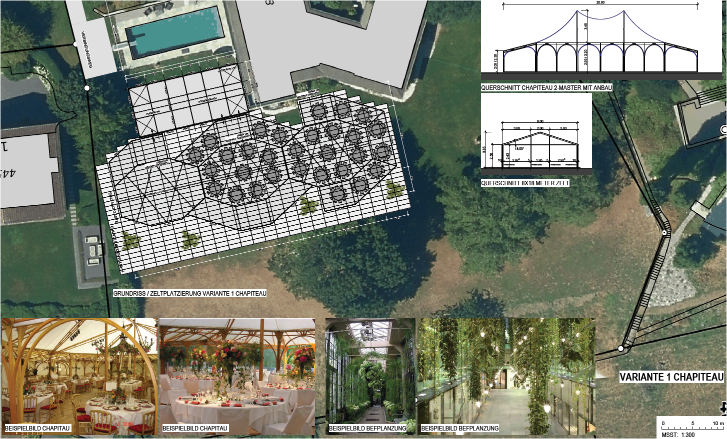 Die eleganten und charismatischen Chapiteau Zelte werden speziell für Ihren Anlass, an dem von Ihnen gewünschten Ort aufgebaut. Auch in der Grösse und Ausführung sind die temporären Bauten mit luxuriösem Touch variabel. Mit offenem Bogendach oder gedeckt mit Pendeltüre, mit oder ohne Entrée. Massgeschneiderte Anlässe im Garten oder Park lassen sich so planungssicher und stimmungsvoll inszenieren.