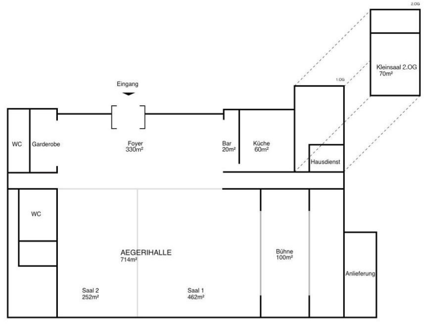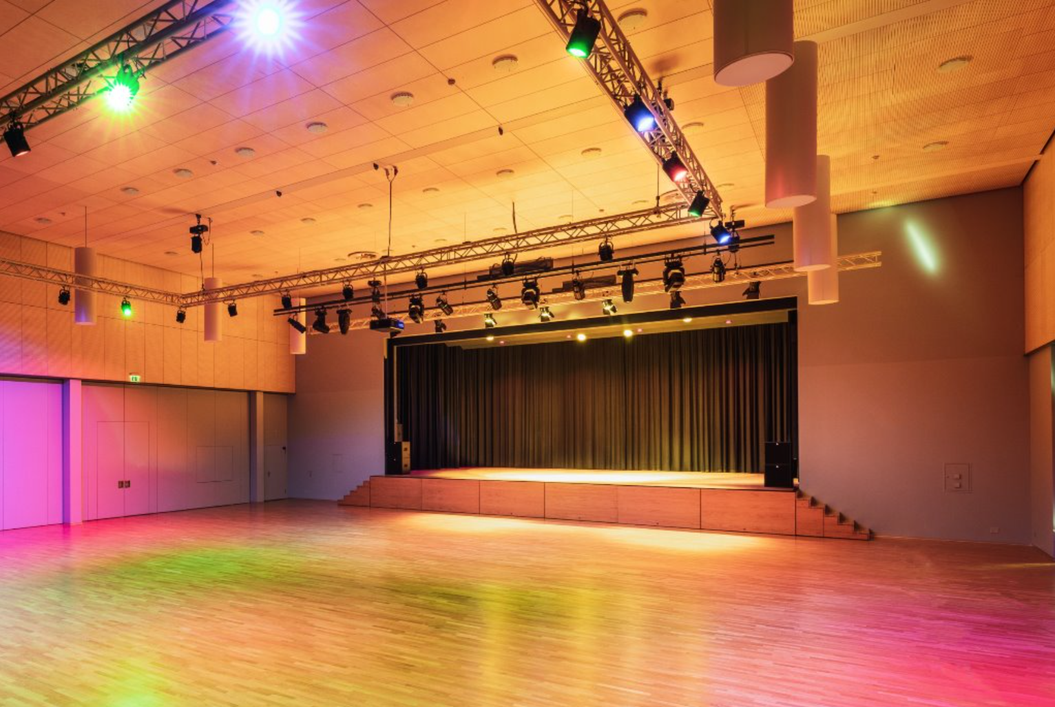 Die zwei Säle können zusammengeschlossen oder durch Trennwände getrennt werden, sodass verschiedene Gruppengrössen sich wohlfühlen können. Das Foyer bietet den perfekten Ort für einen Einstieg mit Apéro, bei schönem Wetter auch verbunden mit dem grossen Vorplatz. Eine breite Vielfalt an vorhandenem technischen Equipment und Mobiliar, sowie Bühne, erlauben unterhaltsame und stimmungsvolle Anlässe. Die Räumlichkeiten befinden sich im Erdgeschoss und heissen, dank ihrer Barrierefreiheit, alle Gäste willkommen, egal ob bei einem privaten Fest, Business Event oder einem kulturellen Anlass.