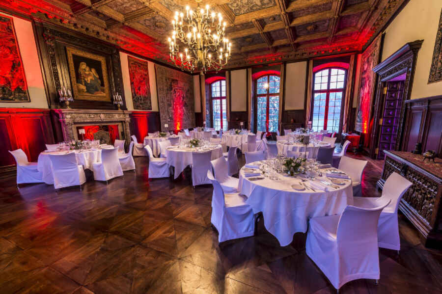 Die Villa St. Charles Hall in Meggen beeindruckt mit vielen repräsentativen Räumen und der grossen Südterrasse mit einzigartigem Ausblick auf das Panorama des Vierwaldstättersees, die Zentralschweizer Bergwelt sowie den weitläufigen Park der Villa. Vom Wienersaal über den Rittersaal bis hin zur Kapelle bietet die St. Charles ein prachtvolles Ambiente für exklusive Anlässe und Hochzeiten.