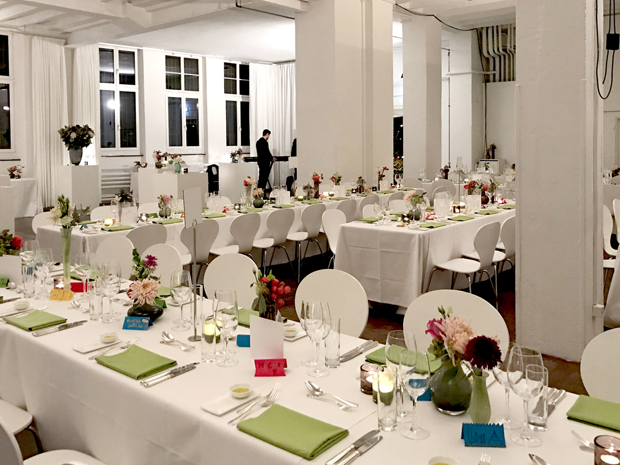 Die sanft renovierte Fabrikhalle in Zürich West hat ihren ursprünglichen Industriecharme bewahrt. Der lichtdurchflutete Raum bietet diverse Möglichkeiten für Tages- oder Abendveranstaltungen. Von der Holzterrasse aus blickt man direkt auf die Sihl und das gegenüberliegende Flussufer.